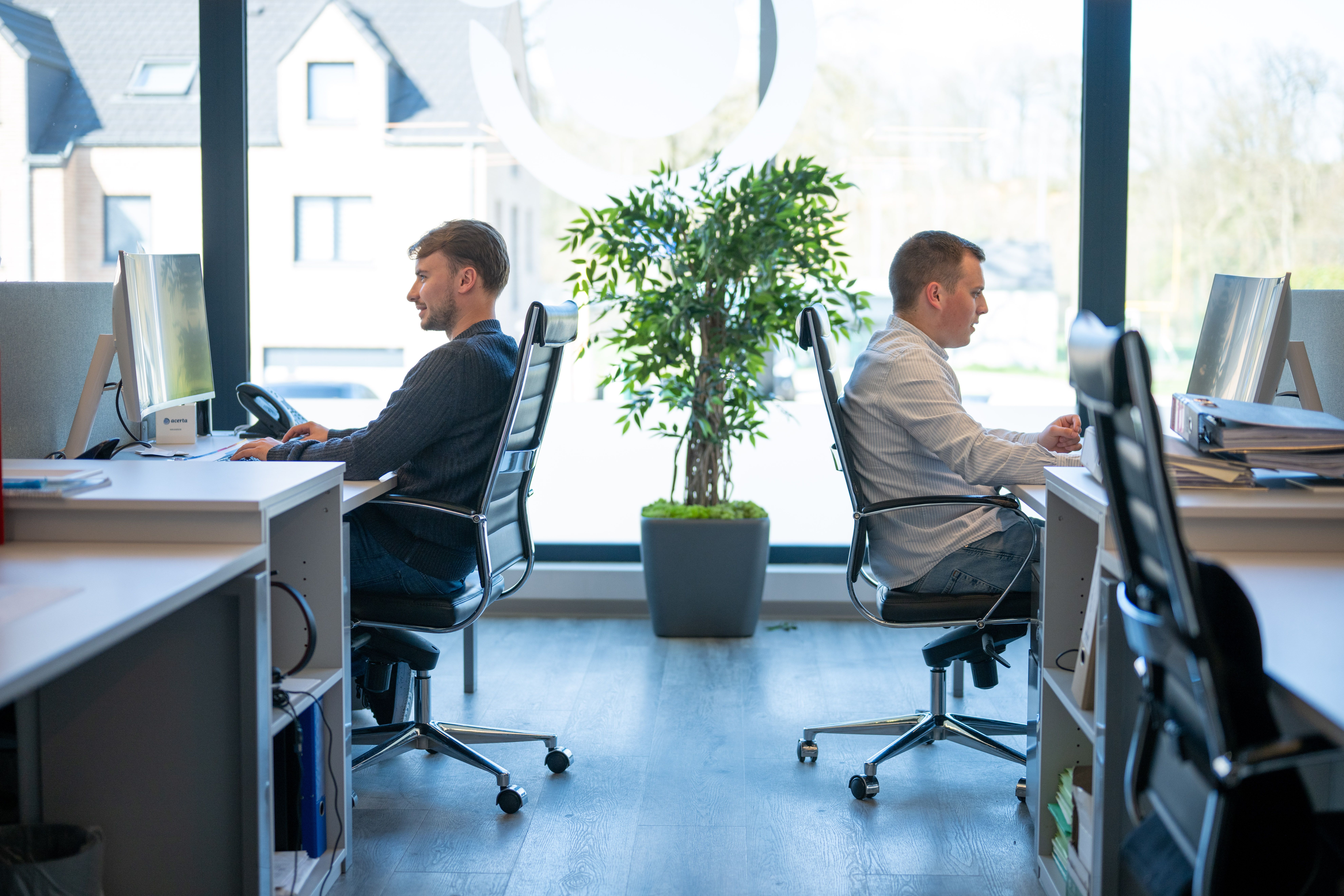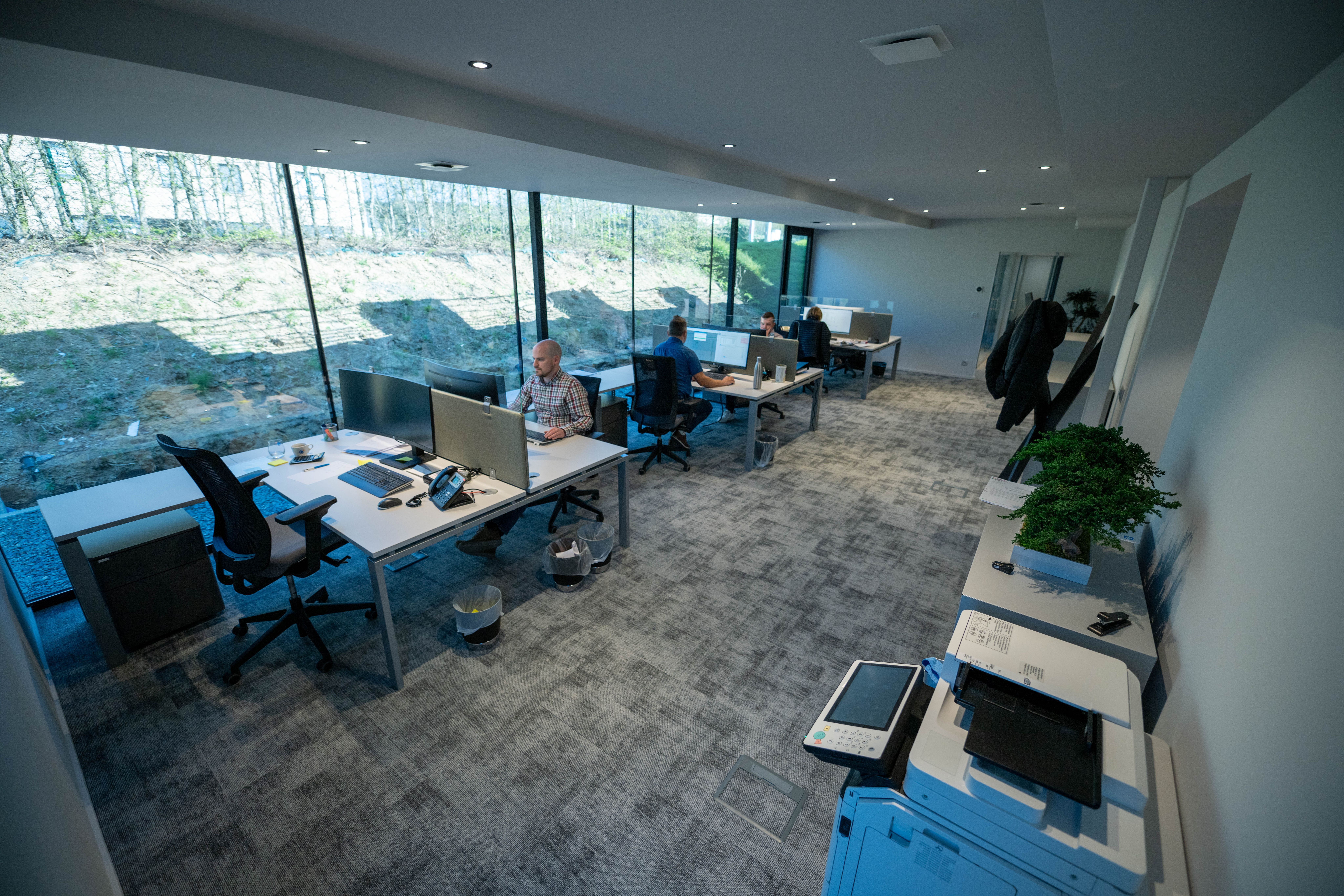 Nos bureaux de Mont-Saint-Guibert, c’est un vrai lieu de vie. Deux maisons rénovées, ultra lumineuses, avec une grande baie vitrée, des espaces de travail modernes, un bar interne, une salle détente avec kicker, et une terrasse baignée de soleil. On y travaille, on y échange, on s’y ressource. Jodoigne et Luxembourg complètent nos antennes pour être proches de nos clients et de nos équipes. Ce cadre, on l’a voulu à notre image : chaleureux, pro et inspirant.